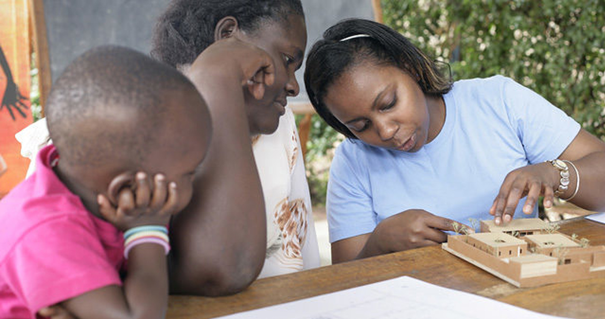 Hollmén Reuter Sandman Arkkitehdit suunnittelee yhteistyössä afrikkalaisen Lyran kanssa asuntoloita yläkouluikäisille tytöille.